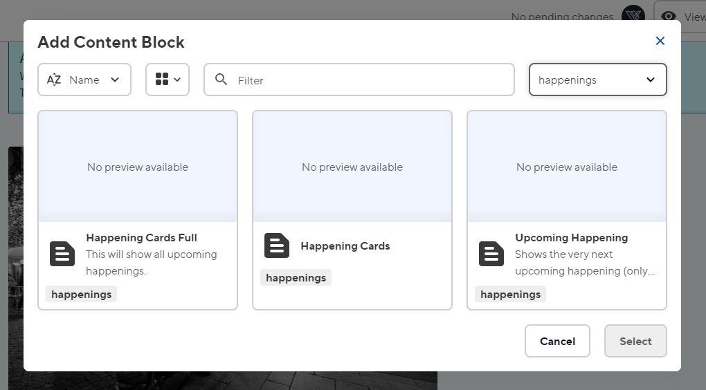 Blog posts can be flagged as a happening which means that they will be picked up by the happenings (as long as the requirements above are met). This is a great option when you want to promote something and having all the information the form of text is enough. This option is also easier and faster since you don’t have to worry about coming up with the structure for a happening page.