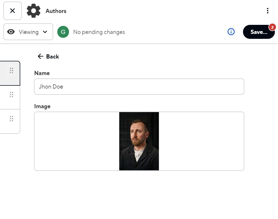 Each author can be given a name an da picture of the author. If it is an entity that is not a single person (such as company) you can use the name of the company and their logo instead.