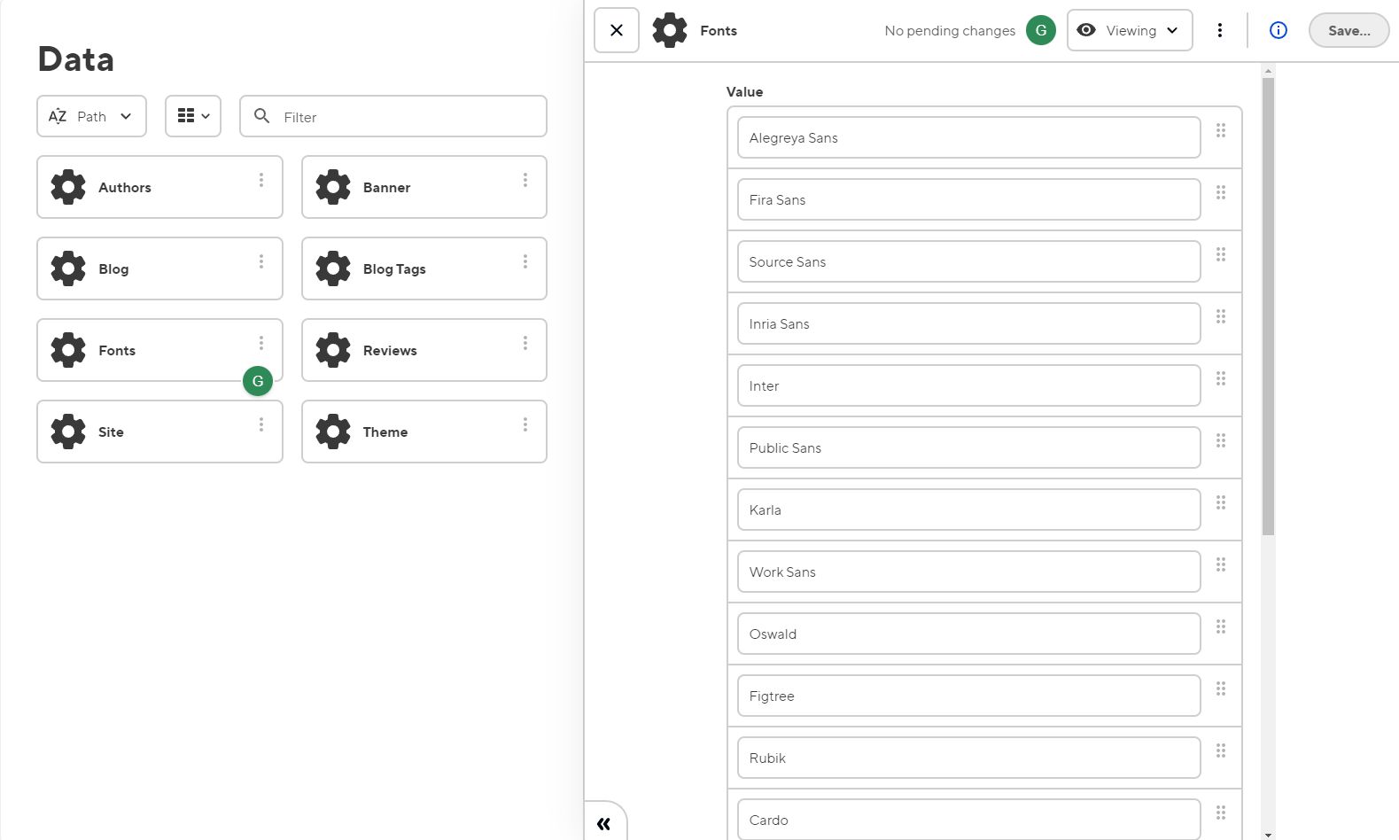 The fonts data file comes with some fonts already set up for to pick from. You can add or remove fonts from here as you wish. However, always be careful to not remove a font that are already using for a website.