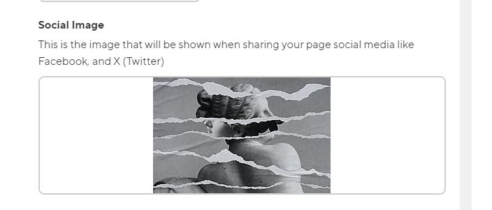 The social image that you select is the image that will be shown on platforms that support the Open Graph protocol. Simply put, it is the image that will be shown when people link out to your website on platforms that support it. Notable platforms that support this are Facebook, Instagram, X (twitter) and many others.