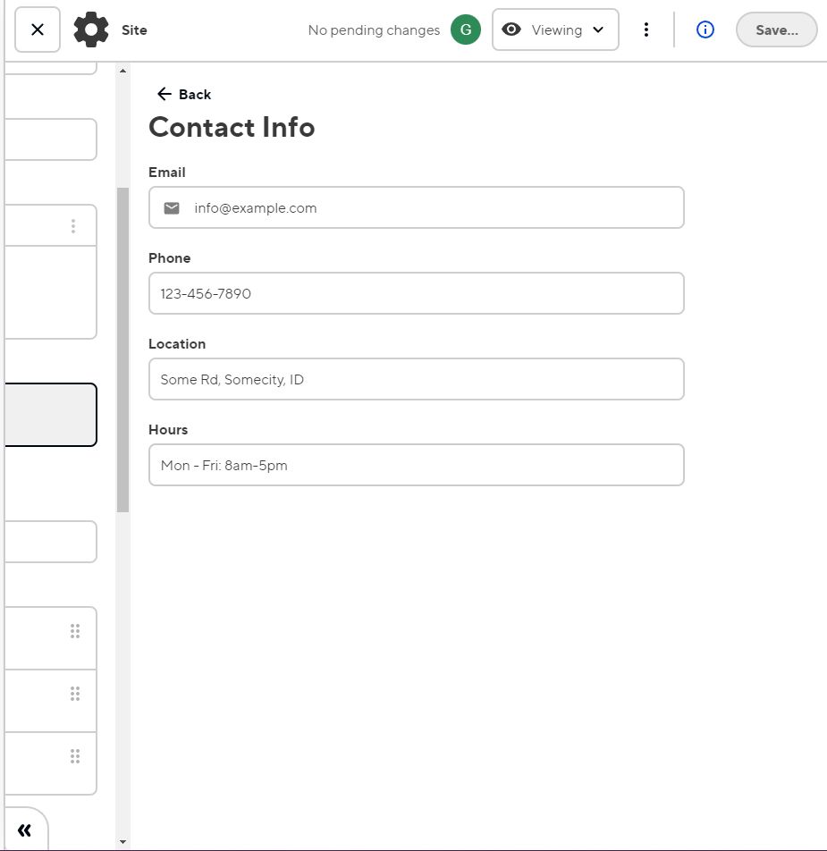 The Email and Phone fields are self explanatory. They are set up to work with only emails and Phone numbers. Placing incorrect information into these fields will cause this contact information to break anywhere it is used on the site, such as the main navigation.