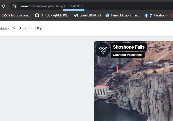 For example if the URL at the top of the website is “https://vimeo.com/manage/videos/1025941874” the video ID would be “1025941874”